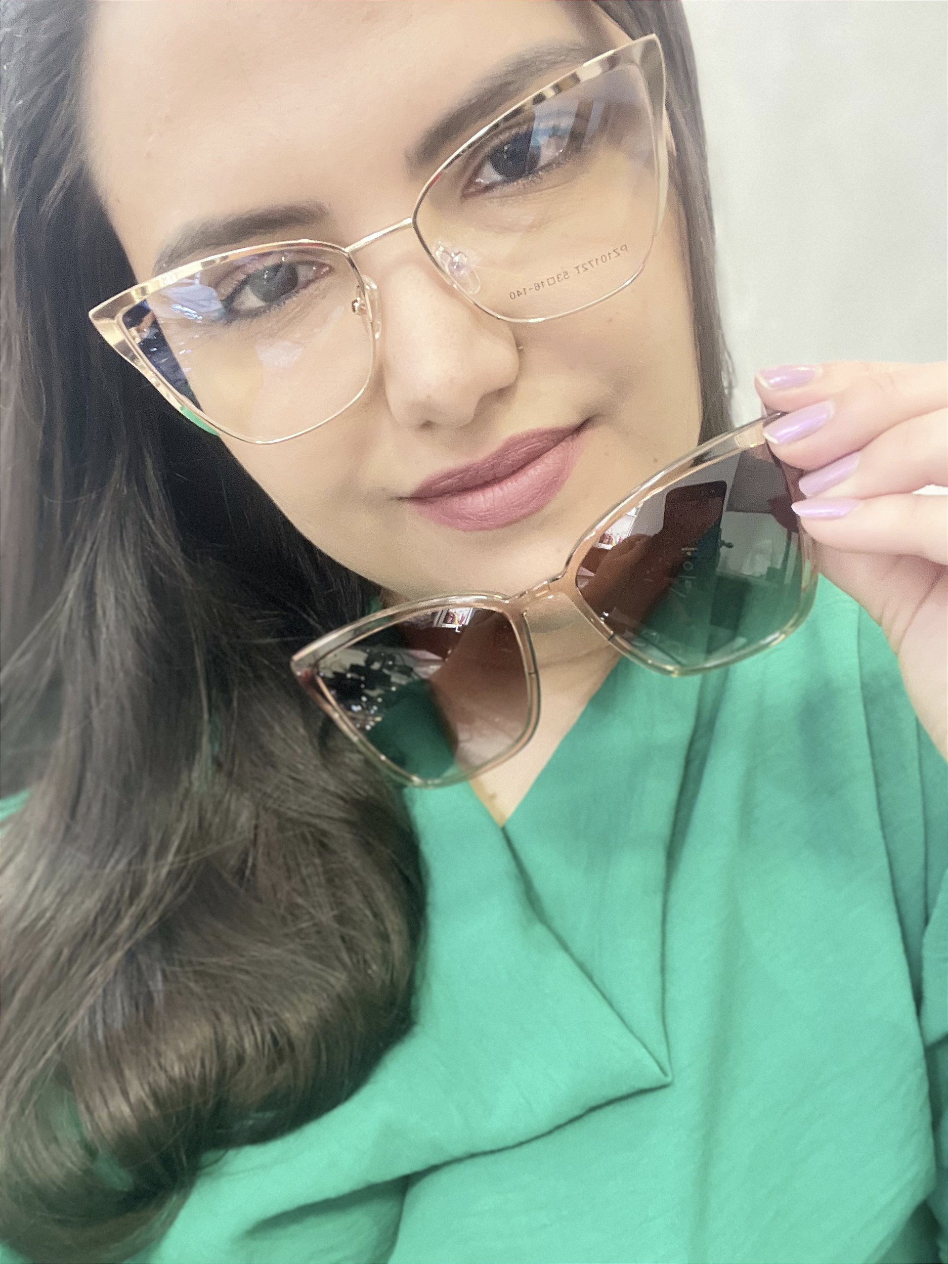 Versatilidade e estilo em um só produto! Esta armação em metal com plaqueta nasal oferece leveza, conforto e ajuste perfeito para o uso diário. Com o sistema 2 em 1, você pode alternar facilmente entre óculos de grau e óculos de sol por meio do prático clip-on magnético. Ideal para quem busca funcionalidade sem abrir mão do design moderno, é a solução perfeita para acompanhar sua rotina com elegância e praticidade.